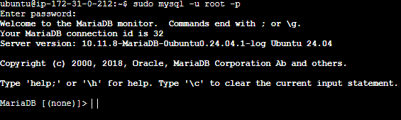 sudo mysql -u root -p