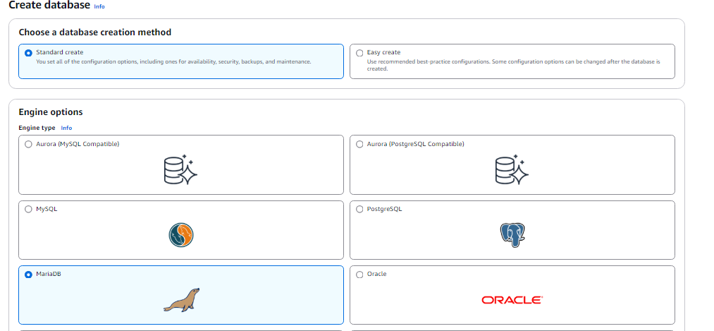 Select MariaDB as the database engine.