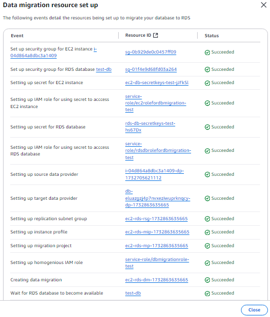 - After configuring both the source EC2 database and the target RDS database: